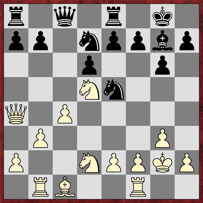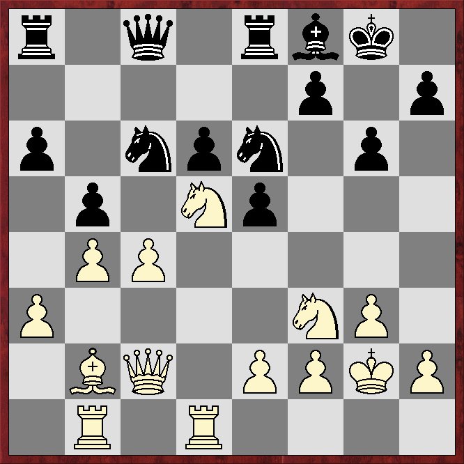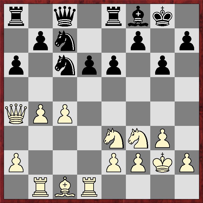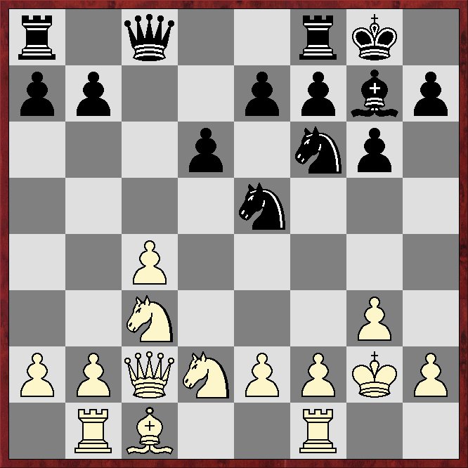 Mijn tegenstander is de draad in de afgelopen zetten kwijt geraakt. Opeens dreigt er Pb6 en Pf6 en het zwarte paard op c6 staat zelf heel wankel.