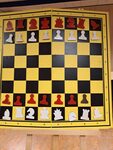Toren is verkleed als loper, paard als toren, loper als paard, dame als koning en koning als dame. Tot slot hebben alle pionnen een andere kleur jas aangetrokken.