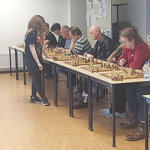 Na afloop sprak ik nog met een aantal spelers waarvan elk zijn/haar bewondering uitsprak voor de simultaangeefster en zei dat er een leuke partij gespeeld was.