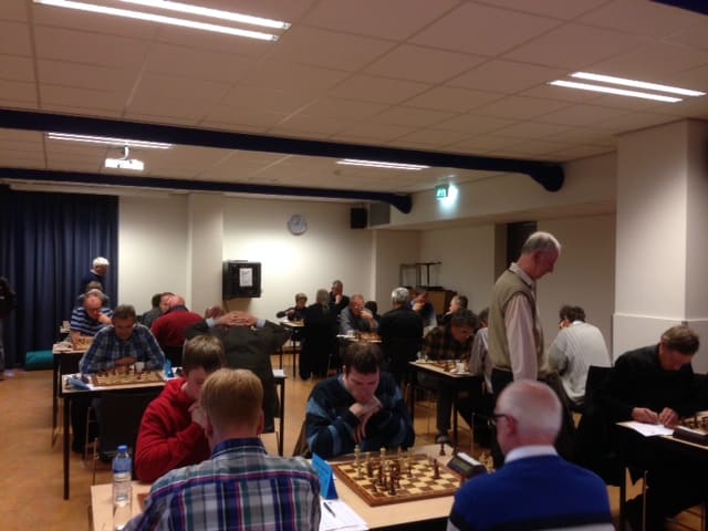 Nadat iedereen zich heeft gemeld maakt de intern wedstrijdleider de indeling bekend en kunnen de partijen beginnen. Het wordt dan heerlijk stil…en er wordt zeer serieus geschaakt!