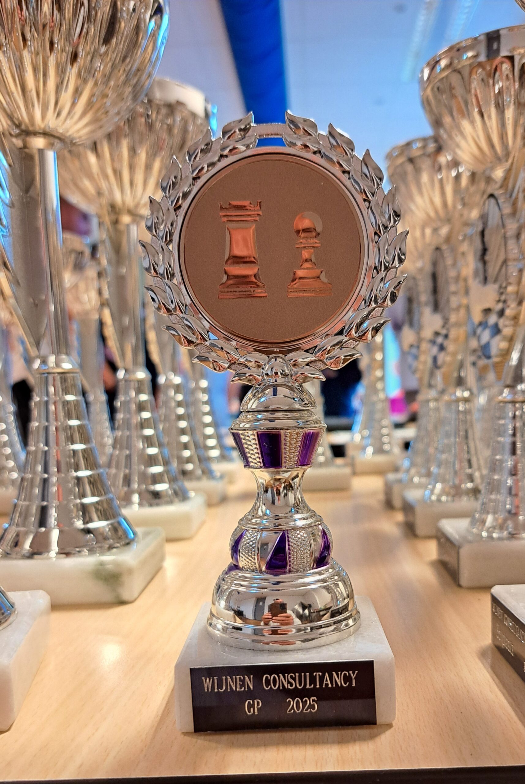 De prijsuitreiking was weer een feest. Ook hier was het extra jubileumbudget van WIJNEN|CONSULTANCY merkbaar. Extra grote bekers voor alle 1e, 2e en 3e plaatsen en dit jaar geen medaille maar een mooie trofee voor alle deelnemers. De toernooiwinnaar kreeg uit de handen van de sponsor Ties Wijnen naast de beker ook een digitale schaakklok als extra prijs. Daarnaast was er voor iedere deelnemer ook dit keer weer mooie verrassing van de sponsor. Een drinkfles en een stapeltoren spel.