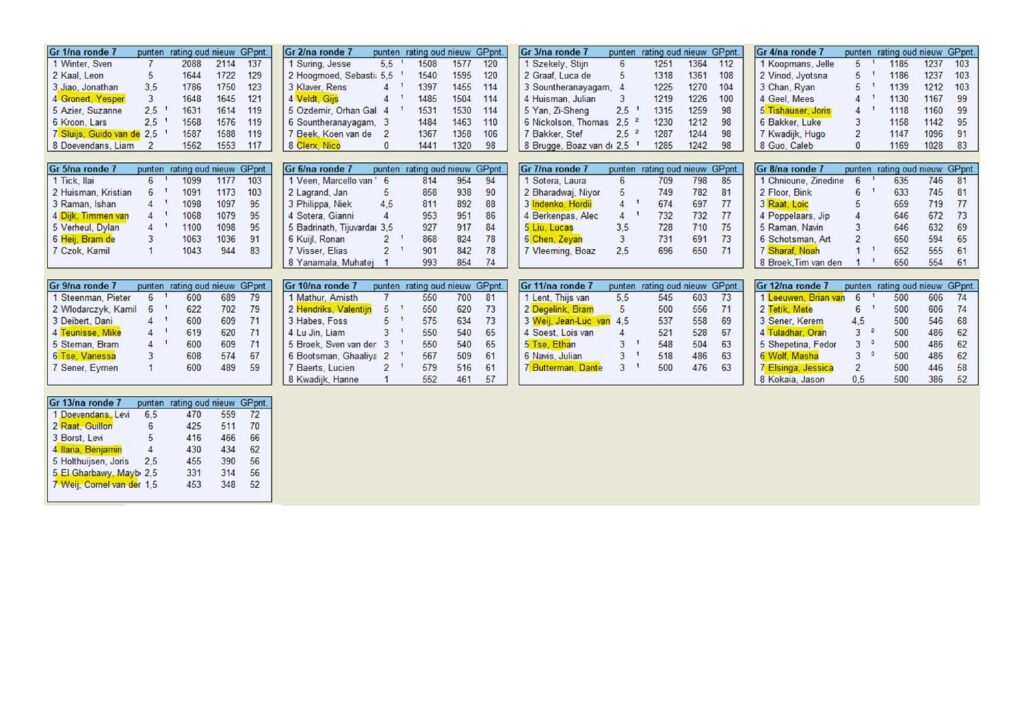 In groep 1 maakte rating favoriet Sven Winter van S.V. Amsterdam West, met een indrukwekkende rating van 2088, helemaal waar wat je zou verwachtten. Hij speelde sterk en overtuigend, en met een 100% score liet hij zijn schaaktalenten spreken en daarmee de verdiende toernooiwinnaar werd.